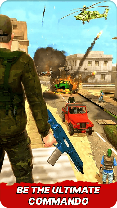 The game features multiple advanced weapons, easy and smooth control in the war simulator, interesting missions, a realistic environment, addictive gameplay, smooth controls, and realistic sound effects. Download and play for a real-time shooting experience in the war simulator.